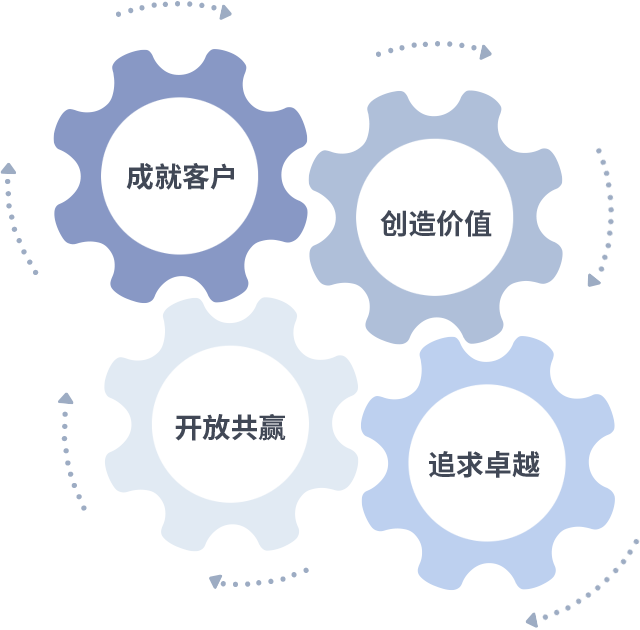 成就客户是一切决策的出发点,创造价值是衡量所有工作的标准,追求卓越是尊龙z6做事做人的态度,开放共赢是尊龙z6的格局也是最终的结果。价值观的齿轮环环相扣,推动着组织里的每个人不断向前。
